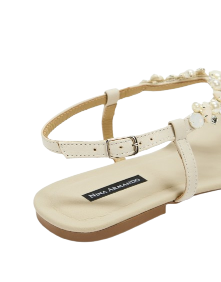 Elevate your warm-weather style with ELLIE SANDALS by Nina Armando. This elegant sandal features a chic T-strap design adorned with pearls and crystals, paired with a cushioned footbed for all-day comfort. Perfect for occasions or everyday wear, Ellie adds effortless sparkle to any outfit.